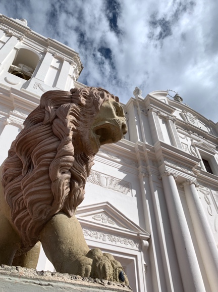 Our included shore excursion bundled us onto buses and drove us from our dock in Corinto to the city of Léon, a 2 hour drive through the countryside. Fortunately, the MarcoPolo tourist buses were comfortable and air conditioned. The windows were very darkly tinted, and we didn’t make any photo stops. The main highway was paved, but many side streets are dirt, leading into neighborhoods that look like those we have seen in South America- tightly packed cinderblock and brick structures with rusting steel fences and narrow sidewalks separating their living rooms from the street. Ocasionally you could glimpse someone sitting shirtless just inside their front door, or perhaps just leaning against the doorway as we drove past. It was very hard to get any good pictures of those typical scenes as we drove by.